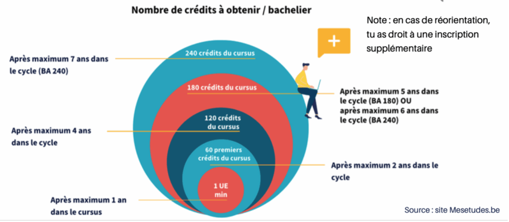 [1] Pour qu’une institution accepte de t’inscrire de plein droit, tu dois respecter certaines balises, c’est-à-dire avoir acquis un certain nombre de crédits au terme d’un nombre maximum d’années académiques.